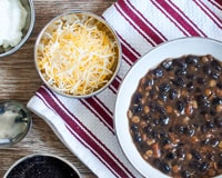 Feel free to add a ham bone, ham or chicken if you want. Or, serve with steamed rice to turn the beans into a complete protein, containing all nine essential amino acids. And definitely consider topping your bowl with a squeeze of fresh lime juice, avocado, cilantro or one of the other options listed. This soup has a mild-to-medium heat level which can be adjusted by adding more or less of the chipotle, serrano or jalapeno peppers.